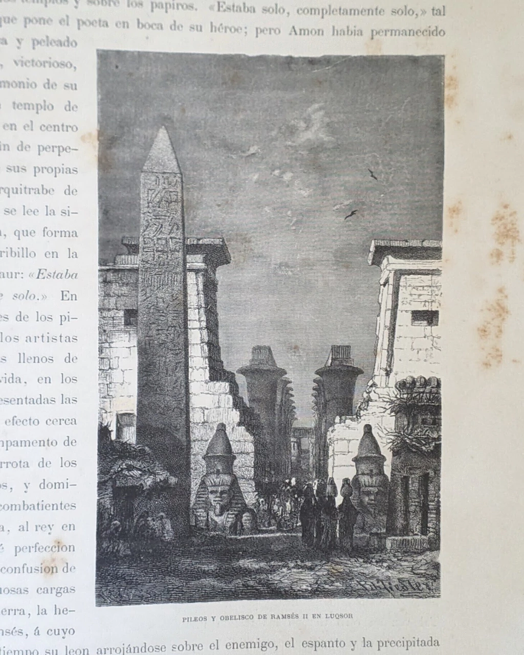 En este tomo, el lector se adentra aún más en la vida, las costumbres, la religión y la cosmovisión egipcia, exploradas con el espíritu de una época en la que descifrar jeroglíficos y reconstruir el pasado era casi un acto de arqueología intelectual. No es solo historia: es una mirada decimonónica que intenta devolverle voz a templos, dioses y hombres sepultados por el tiempo.