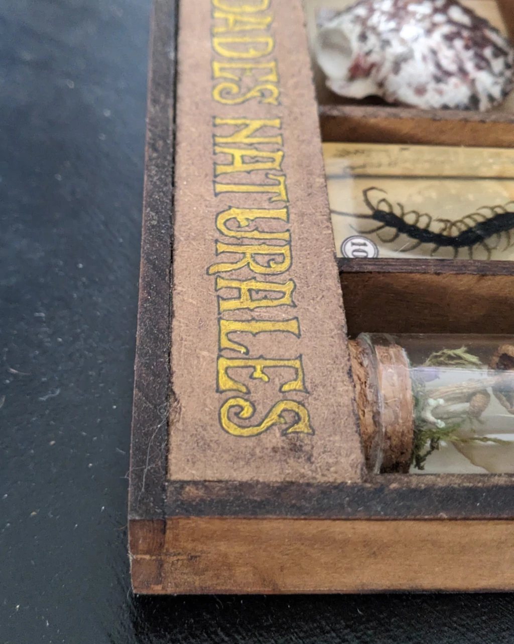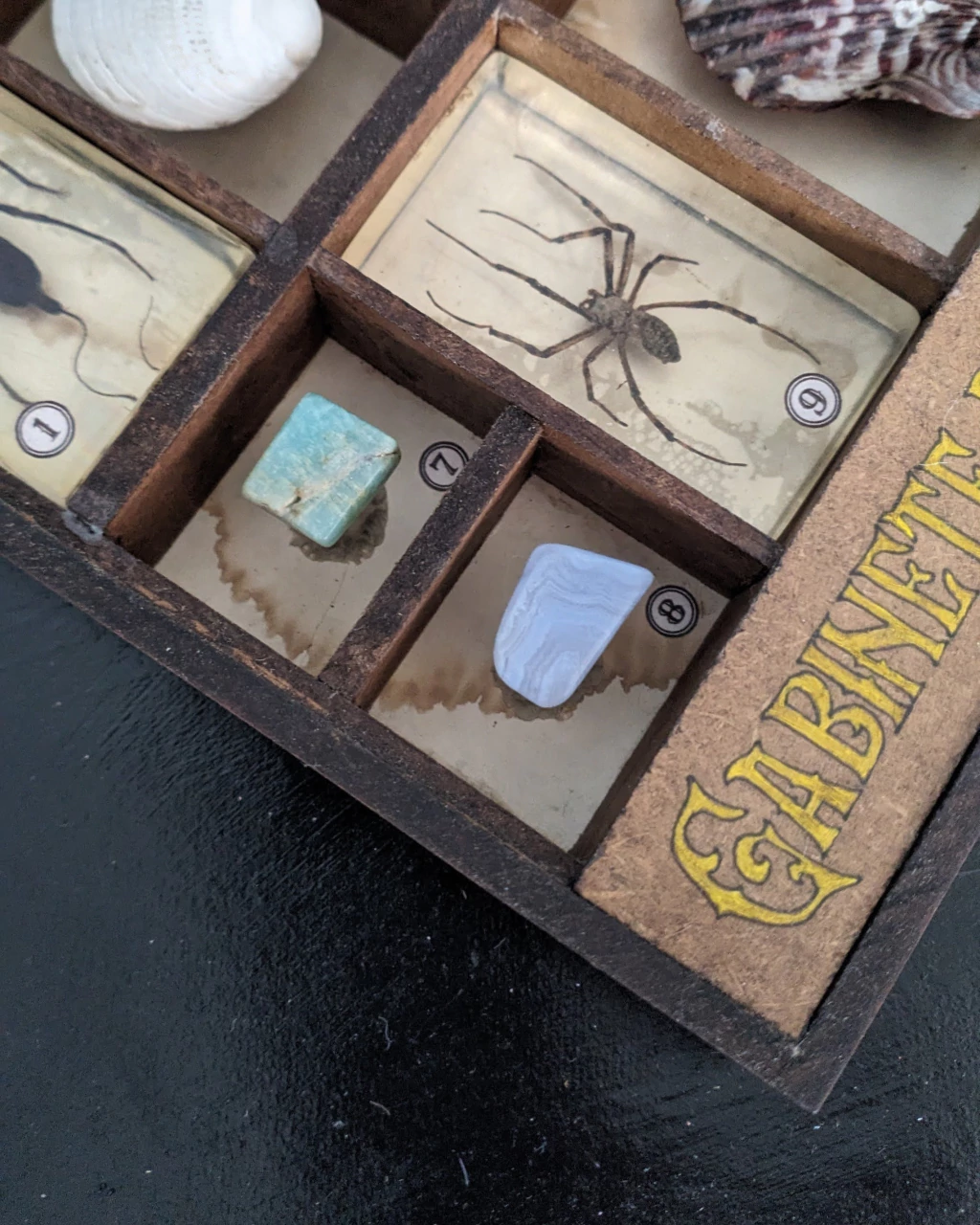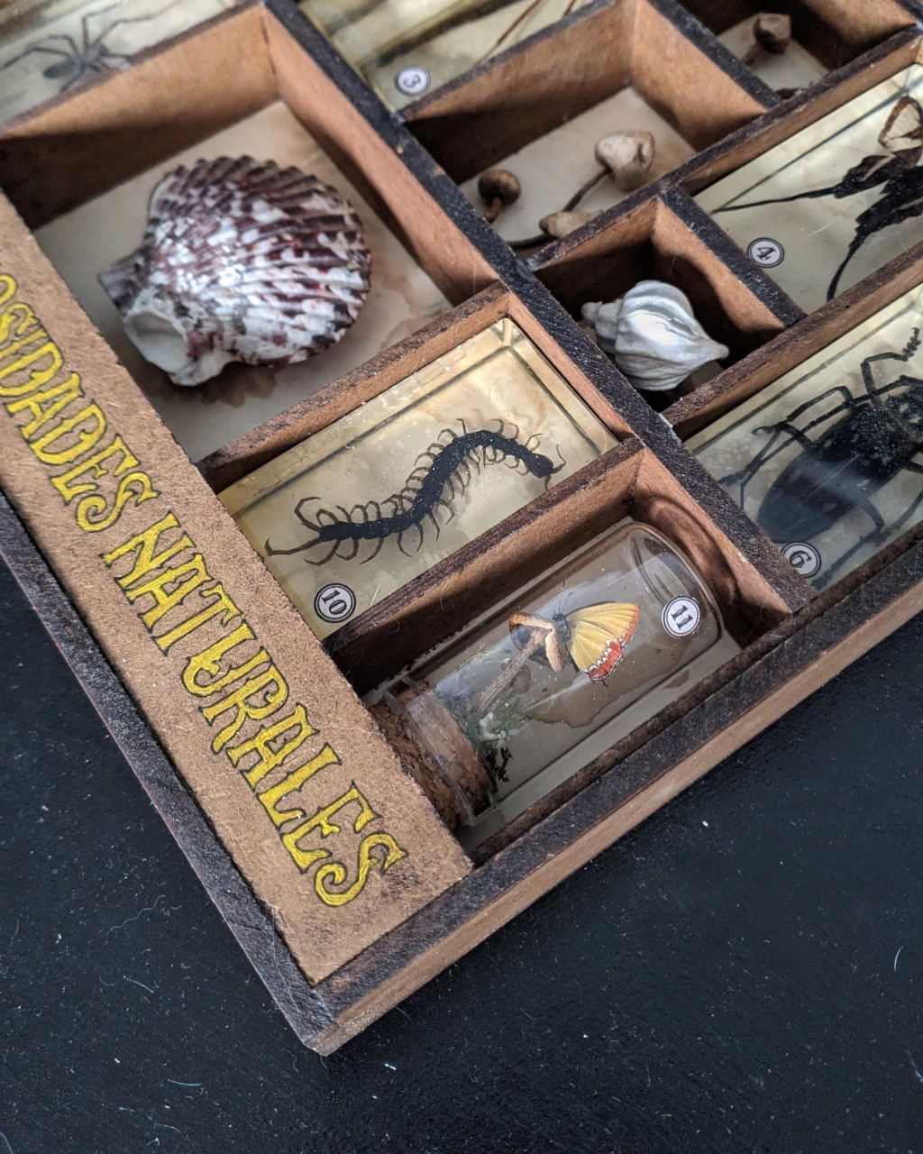Imaginá abrir un cajón olvidado de un museo del siglo XIX. Dentro, una pequeña colección de maravillas naturales cuidadosamente ordenadas, como si cada compartimento contara una historia distinta: minerales, insectos conservados en resina, caracoles marinos y objetos que parecen haber sido recolectados en antiguas expediciones científicas.